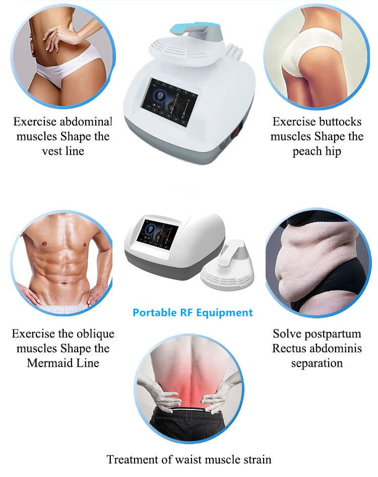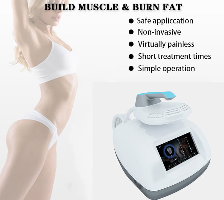 Using High Energy Focused Electromagnetic Wave) technology to continuously expand and contract autologous muscles and carry out extreme training to deeply reshape the internal structure of the muscle,that is, the growth of muscle fibrils (muscle enlargement) and produce new protein chains and muscle fibers (muscle hyperplasia), so as to train and increase muscle density and volume. The 100% extreme muscle contraction of High Energy Focused Electromagnetic Wave technology can trigger a large amount of fat decomposition,Fatty acids are broken down from triglycerides and accumulated in fat cells.The concentrations of fatty acids are too high ,causing the fat cells to apoptosis, which is excreted by the body’s normal metabolism within a few weeks. Therefore, slim beauty machine can strengthen and increase muscle, and reduce fat at the same time.