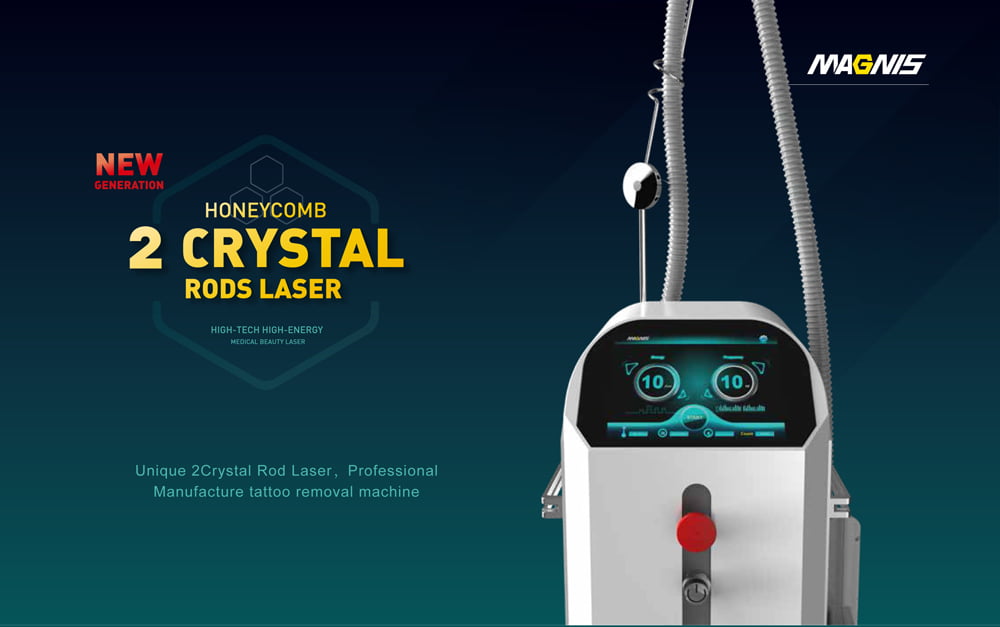 the Q-Switched Nd:YAG 1064 nm laser and the Q-Switched Nd:YAG 532 nm laser wavelengths are absorbed by natural chromophores, like melanin, hemoglobin and water and by exogen pigments like tattoo ink. They are indicated for tattoo removal. The 1064nm is suggested for dark blue and black ink and the 532nm is suggested for red, orange, yellow, and purple ink.
